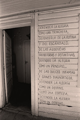a mulher imprime uma poesia para colar na parede do quarto de banho, ao lado dos cinco princípios. respira fundo. vem aí um novo dia...